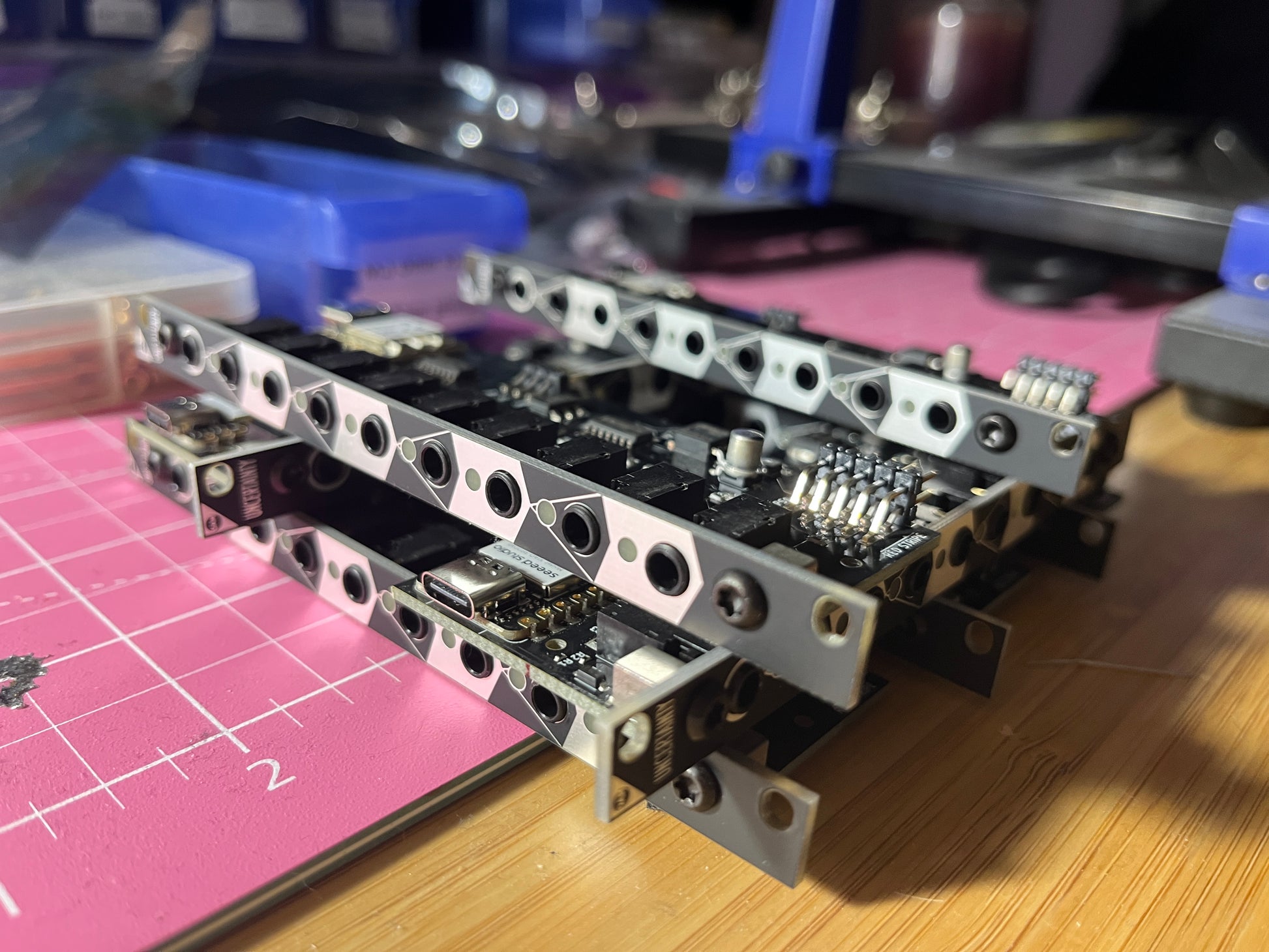 As of March 2023, Uncertainty has its second official firmware, VU Meter. Just a perfectly normal VU Meter where each LED gets its own gate output. Wait, what? No one’s ever done that? But it makes gated effects and modulation so easy. Seriously, try it. It’s too cool. Also, you can use jumpers on the module to invert the VU Meter or switch it into dot-mode, where only the peak LED is activated. So the loudness contour of a patch can strum things!